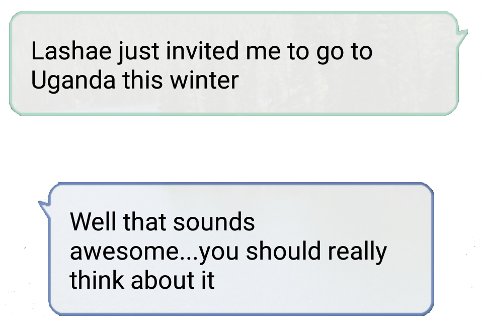 Now, I knew Lashae was serious about going – she’d already been twice and in the four and a half years that we’d known each other she talked about going back constantly. Her family went at least once a year and one of her sisters was adopted from there. For them, Uganda is a second home.